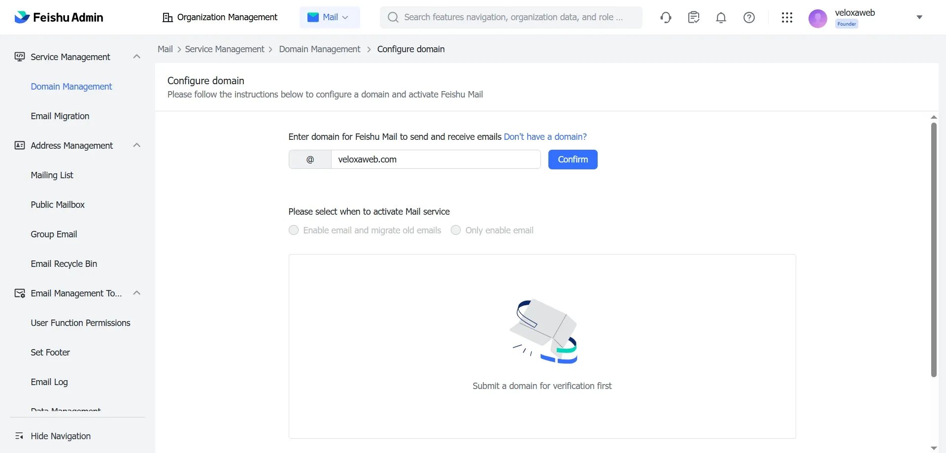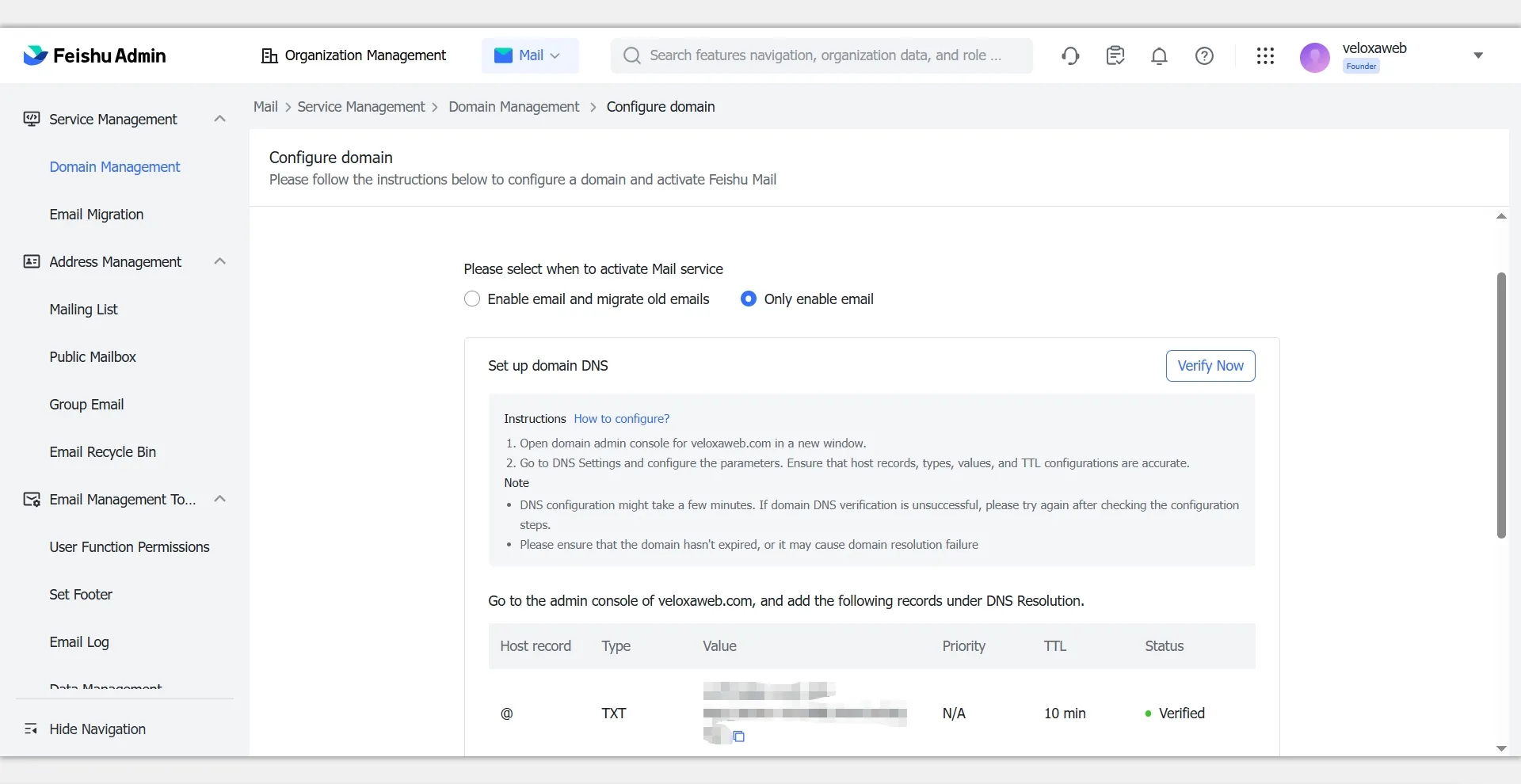 飞书搭建域名邮箱流程: