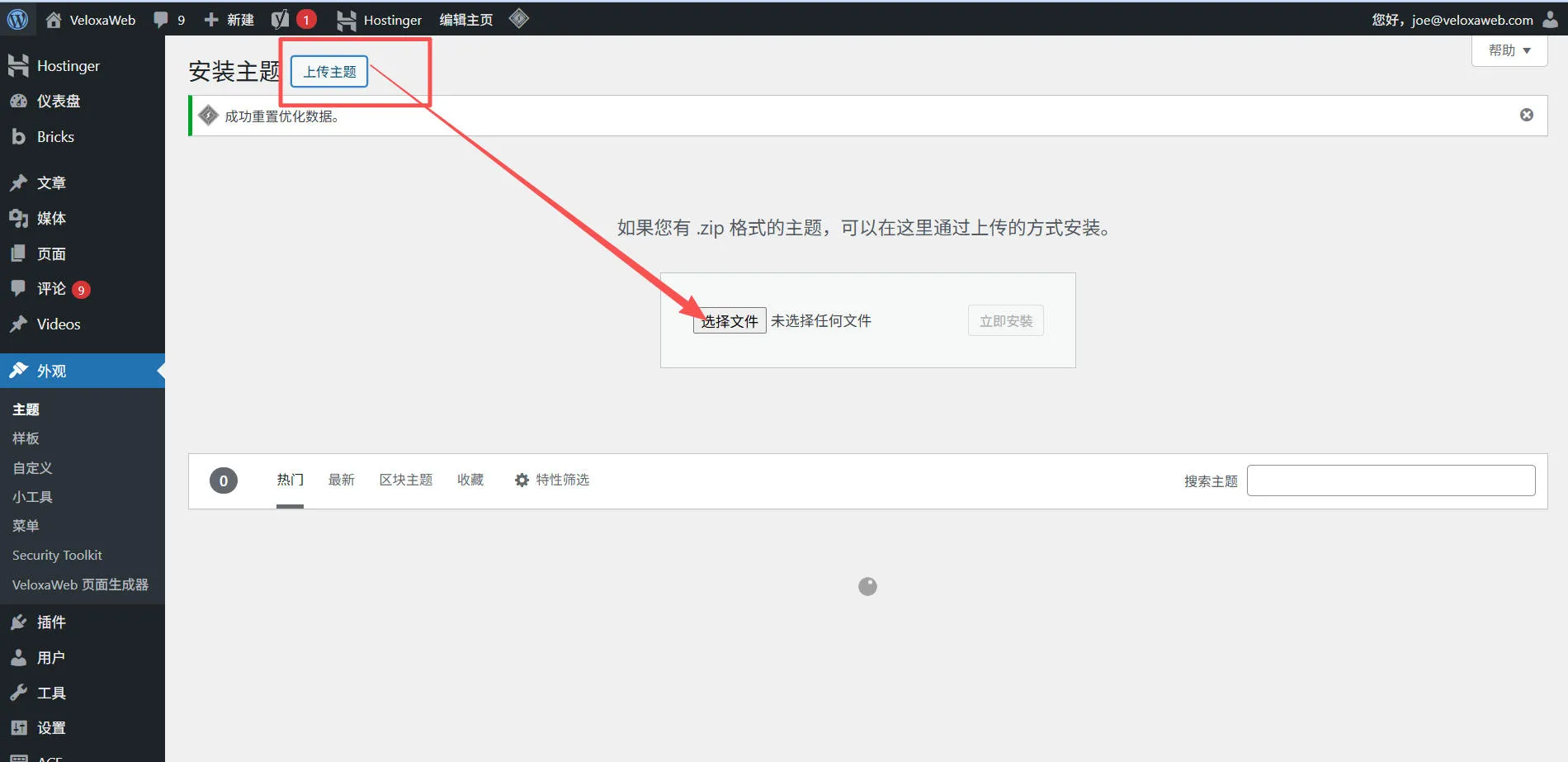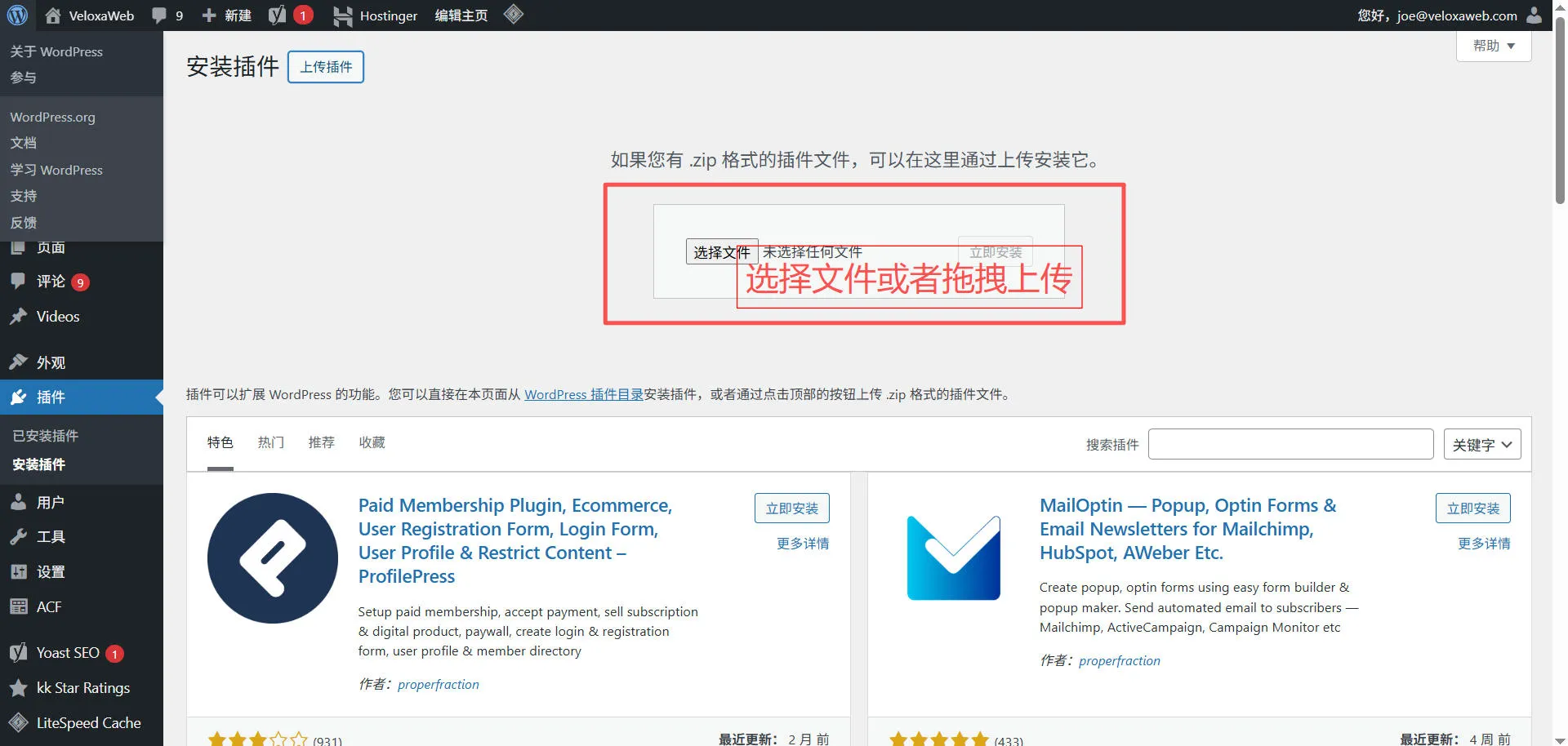 手动下载 WordPress 上传