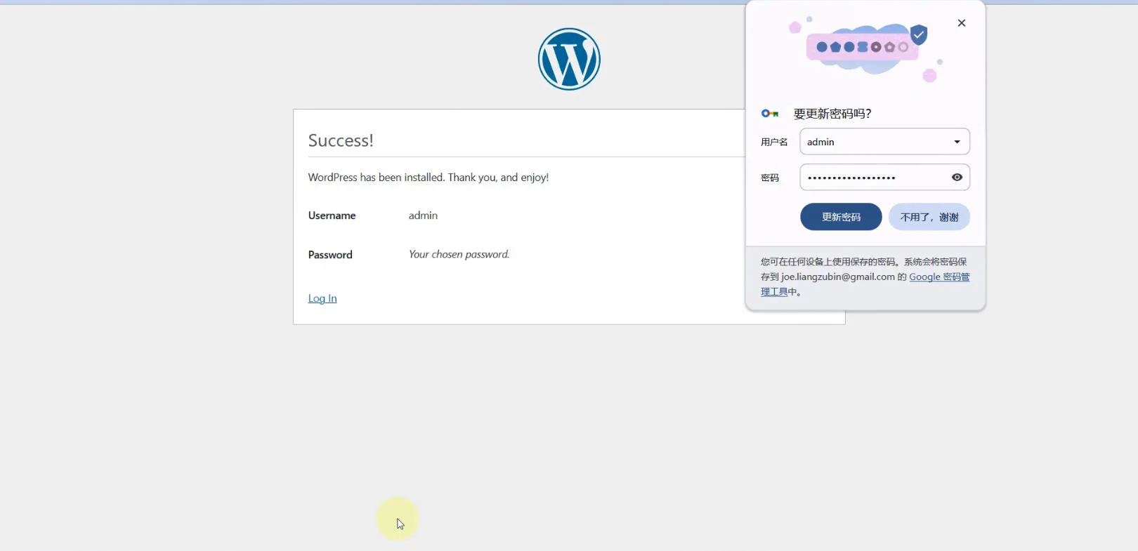- 等待安装Wordpress建站程序安装成功。