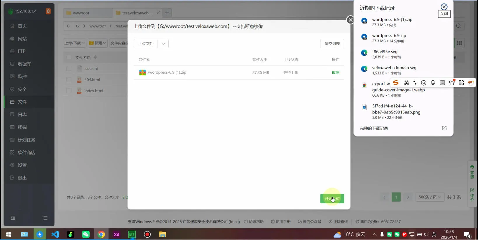 上传 WordPress 文件到网站根目录