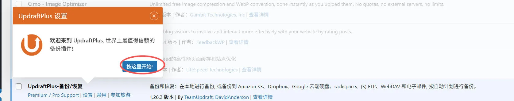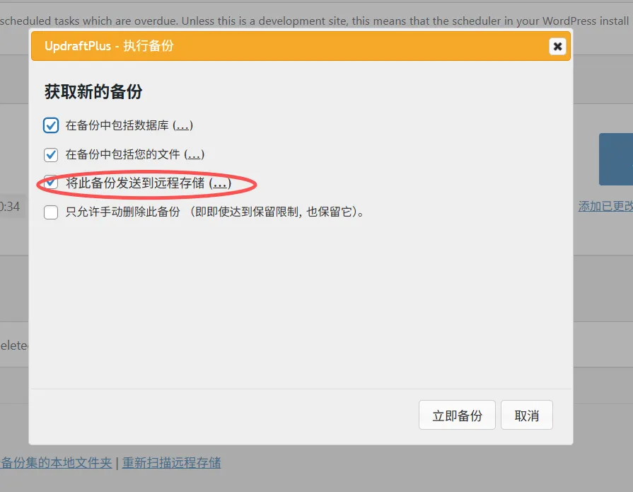 如果使用UpdraftPlus插件。