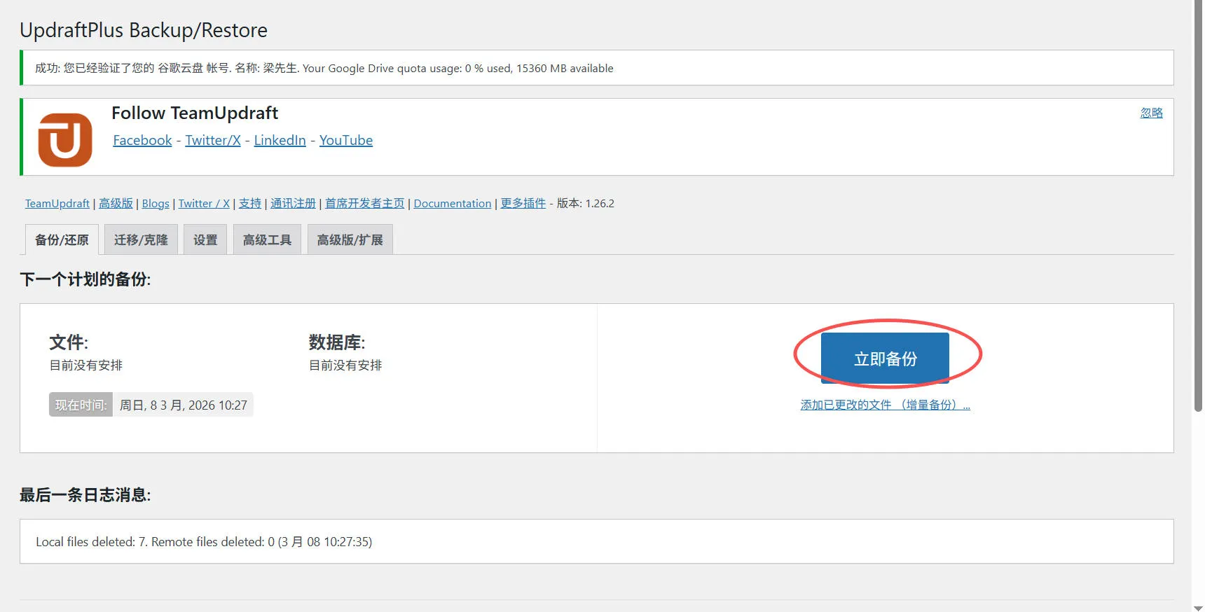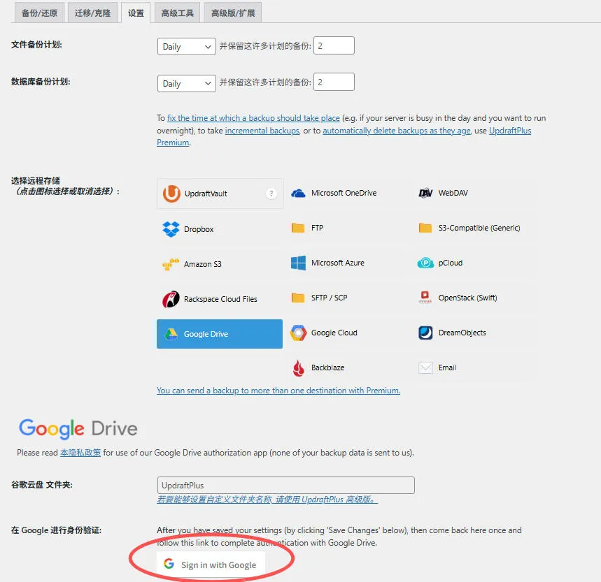 UpdraftPlus + Google Drive 自动备份