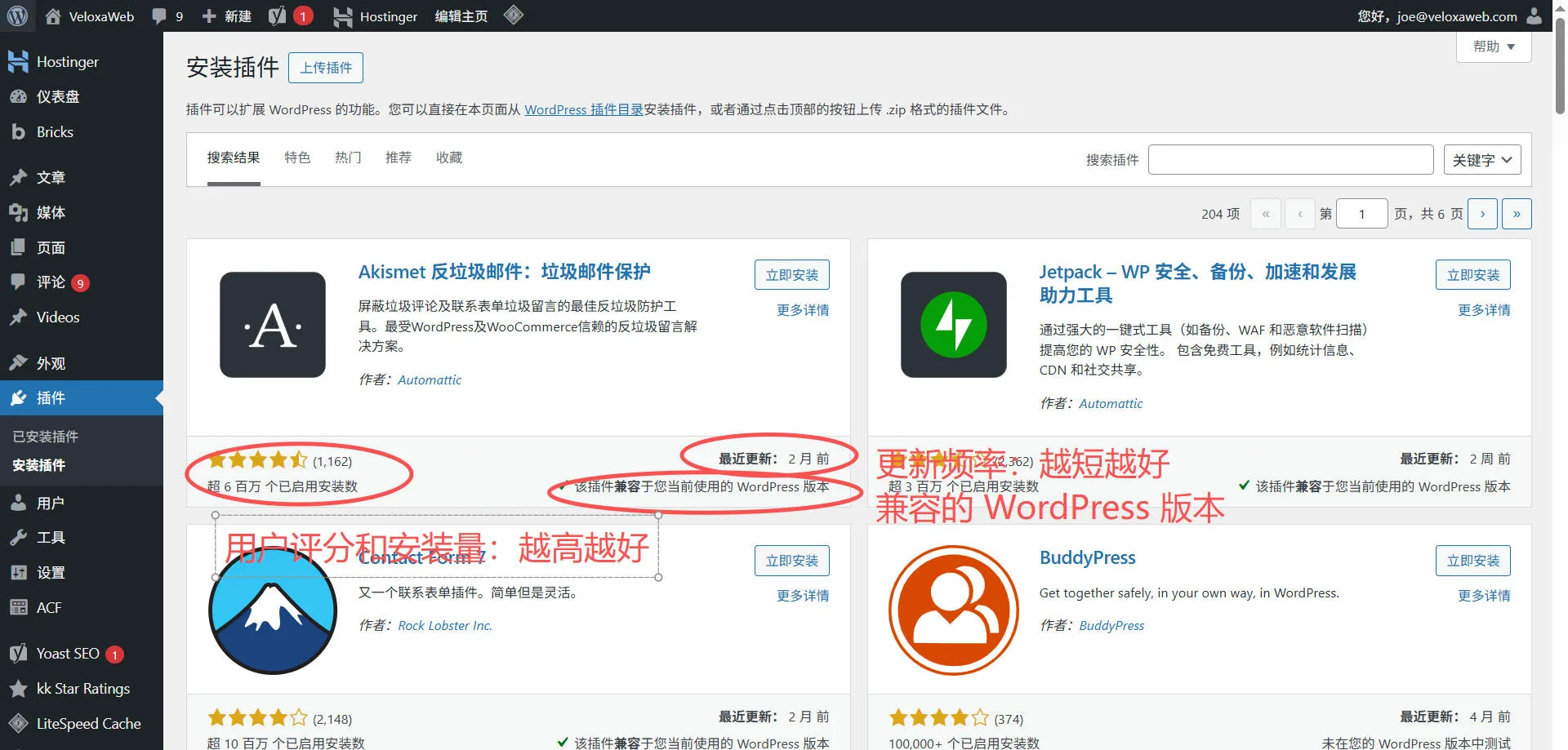 - 优先选择维护活跃、评分高的插件 —— 更新及时,安全性高,兼容性好。